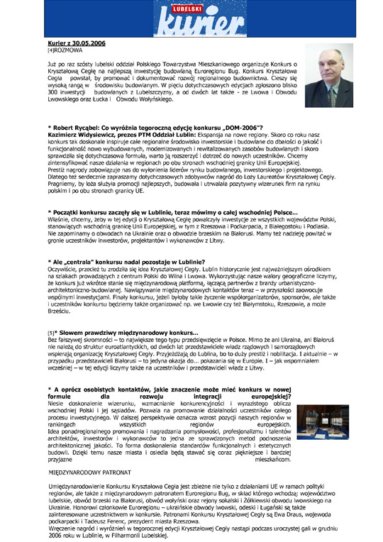 Artykuły, relacje i publikacje dotyczące Konkursu DOM „O Kryształową Cegłę" w polskich i zagranicznych mediach.